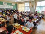 どんどんおかわりをしている3年生。元気いっぱいに食べていました。
