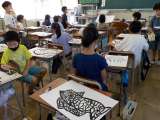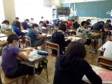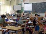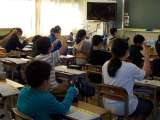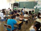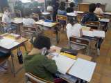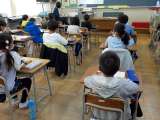 問題を解いた後は、プロジェクタにうつった答えを確認しながら、答え合わせをしてい...