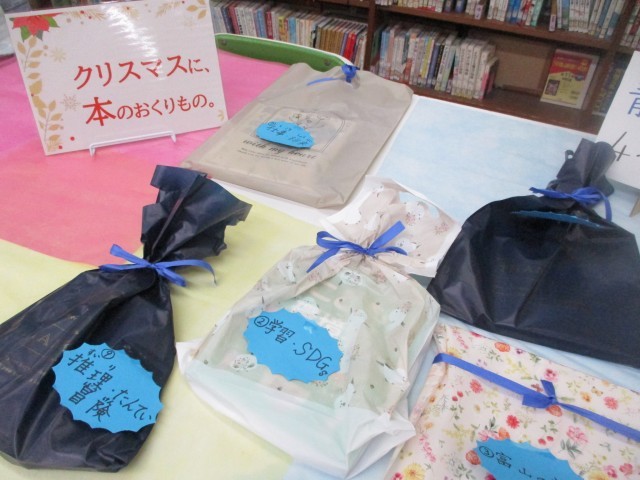 図書館では、「本のおくりもの」というイベントが企画されています。好きなジャンルごとにおすすめの本がプレゼントのように放送されています。1,2,3年生向けのコーナーは、早くも残り1つになっていました。
