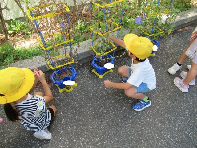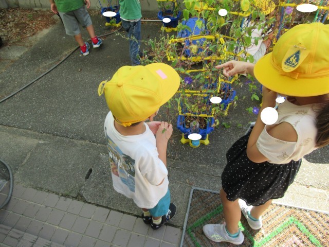 あさがおの種をとりにいきました。初めて種がとれて、とても喜んでいる様子も見られました。