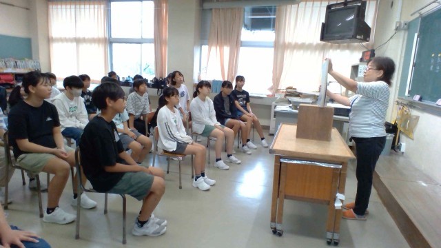 お話の会「ゆめ」の方の読み聞かせがありました。呉羽の白鳥城であった戦の紙芝居を聞き、これから学ぶ戦国時代に思いを馳せていました。