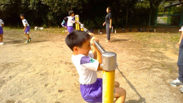スポーツ指導員の先生に鉄棒を教えていただきました。だるま回りや逆上がりなど、一人一人の取組に合ったポイントを丁寧に教えていただきました。