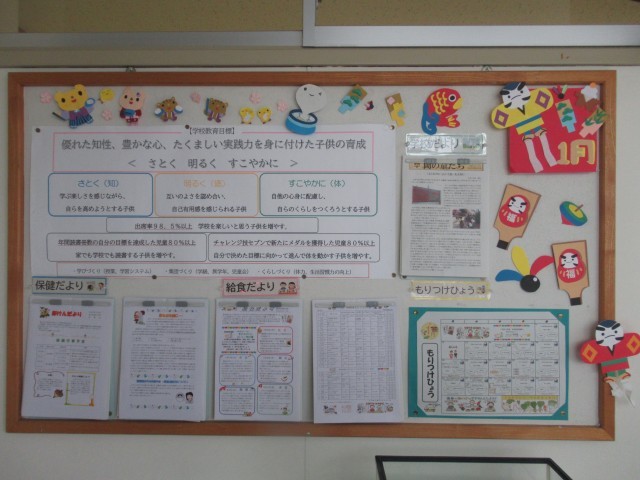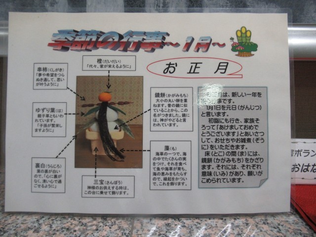 校内のあちらこちらに、お正月の飾りが飾られました。図書ボランティアお話の会「夢」さんの毎月の飾りには、お正月飾りの謂れも書かれています。よかったら、来校の際にご一読ください。