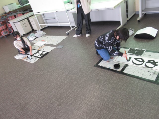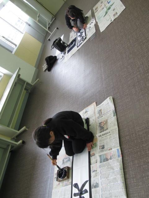 今年の県書初大会は、会場の総合体育館改修工事のため、各学校で行い、提出することになっています。