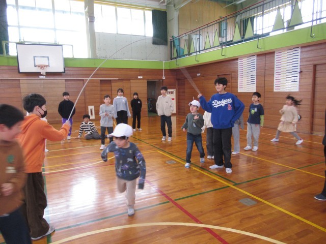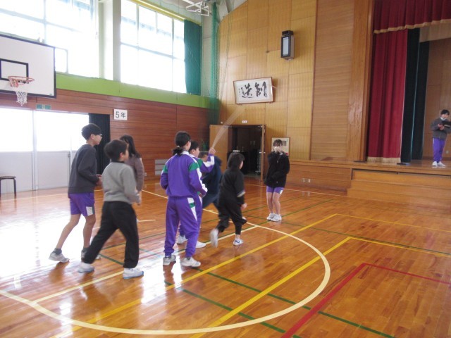 今日・明日と運動保健委員会主催の「大繩大会」を開催しています。今日は、赤団と白団の大会日です。どの団も、なかよし班の仲間と力を合わせて、目標回数を目指して跳ぶことで、なかよし班の仲間との絆を深めていました。
