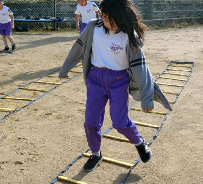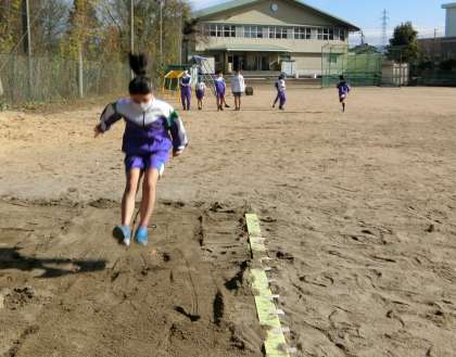 秋晴れ。全校児童が、グラウンドで運動に親しみました。