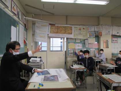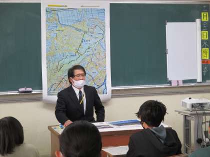 明日の、呉羽丘陵縦断学習に向けて、校長先生から見所を教えていただきました。