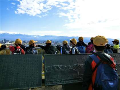 呉羽山展望台。立山連峰の稜線がよく見えました。