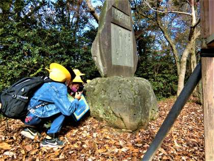 大伴家持の歌碑などを見学。途中で、お茶の花も見つけました。