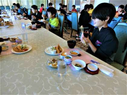 昼食時間。景色を楽しみながら、よく味わっていただきました。