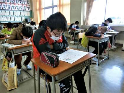 学習のまとめの時期となりました。理科のまとめのテストに挑む6年生。