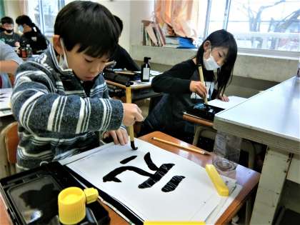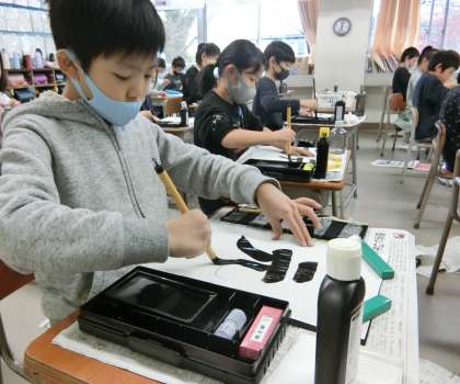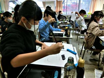 はねや払い等に気を配って、筆を運ぶ3年生。