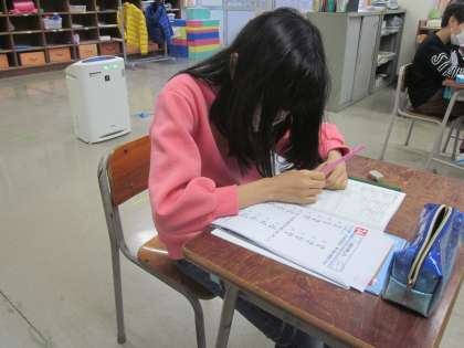 朝活動「ぐんぐんタイム」の様子です。ドリルやプリントに真剣に取り組んでいます。