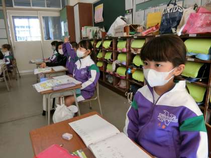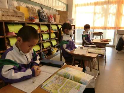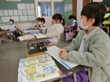 問題文を読んで直ちにたし算の問題かひき算の問題か見抜くことは、1年生にとって高いハードル。時間をかけ、様々な例題で考えています。