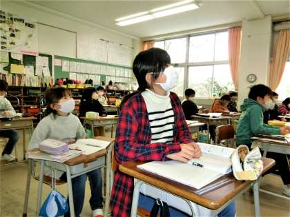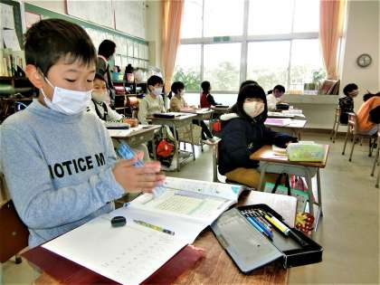 2年生は、8×7=8×6+8のような式が書けるように繰り返し復習をしていました。