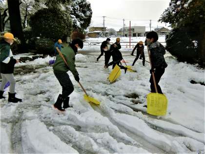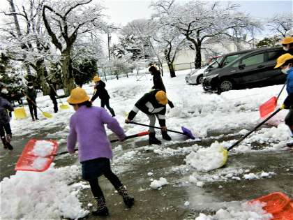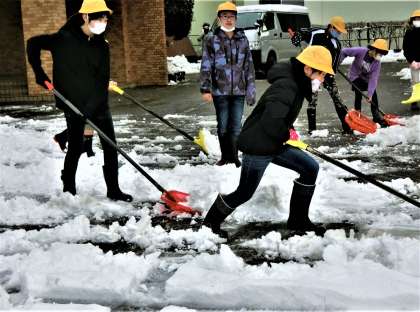 登校したばかりの6年生が、前庭の除雪を手伝ってくれました。