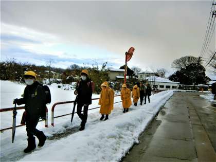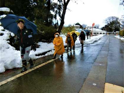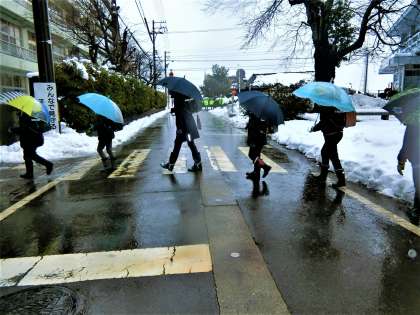 昨日の雪は雨に変わりました。おかげさまで、今日も無事登校できました。