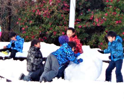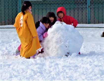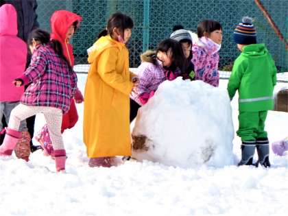 パワフルな1年生。ダイナミックに雪遊びしています。