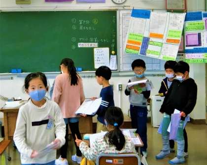 2学期も残りわずか。2年生教室では、ドリルやプリントを手にした子供たちの行列ができていました。