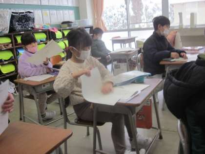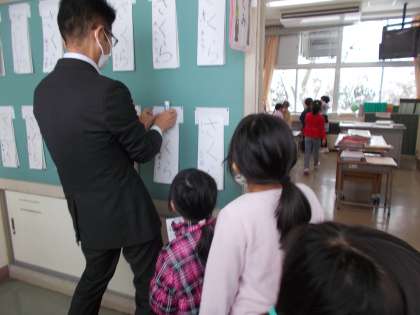 始業式の話を聞いたり書き初めをしたり・・・初日から早速学習開始。