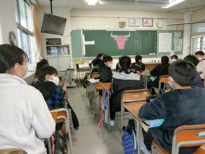 楽しく充実した冬休みの思い出を紹介し合う5年生。
