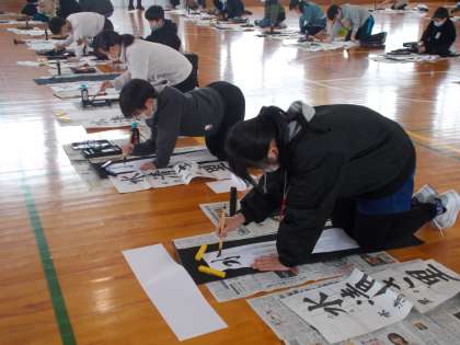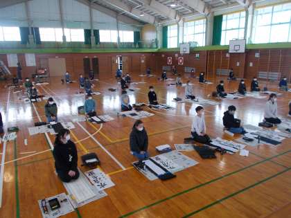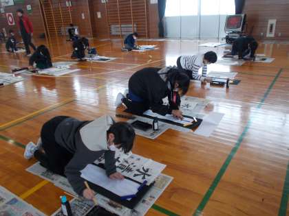 5年生の書き初め「水清き里」。冬休み前より飛躍的に上達しました。