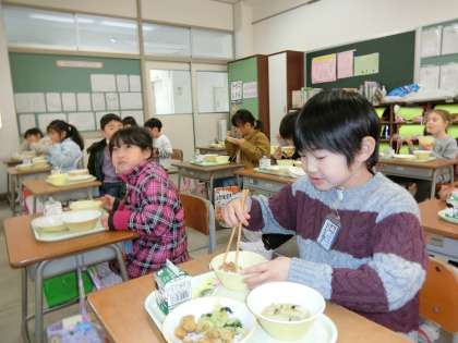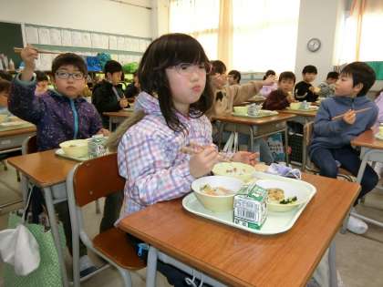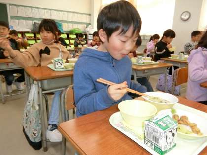 今日から給食開始。糸引く納豆を楽しみながら、美味しくいただきました。