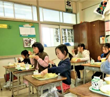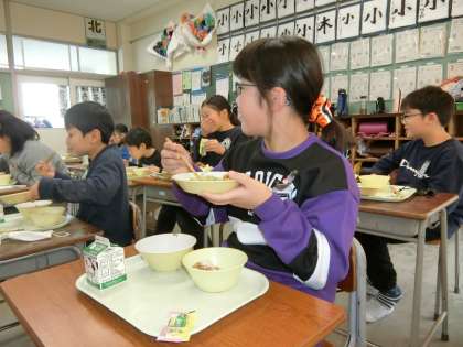 久々の給食。たくさん勉強したせいか、食欲旺盛です。