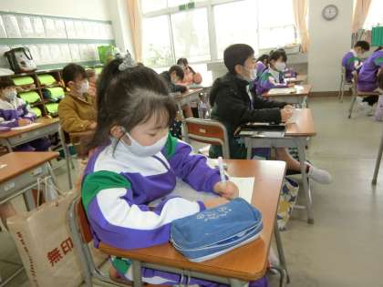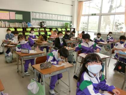 来週から給食週間がスタート。1年生は、調理員さんと栄養士さんに感謝の気持ちを伝えようと言葉を選んでいます。