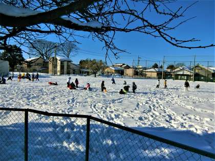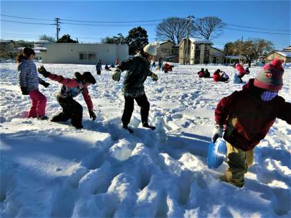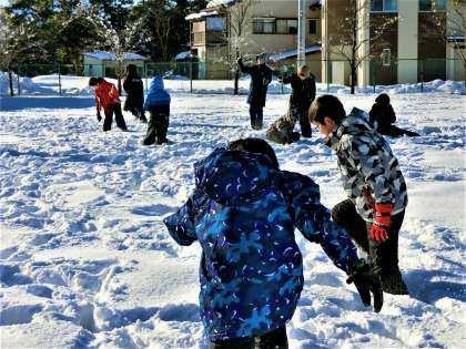 6年生。一見、雪遊びをしているようですが、実は体力つくりなのだそうです。