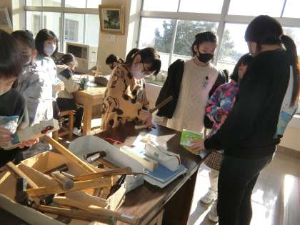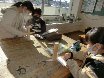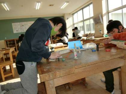 先生や友達とのコミュニケーションを楽しみながら、工作を進めています。