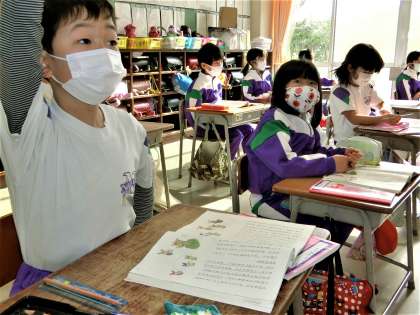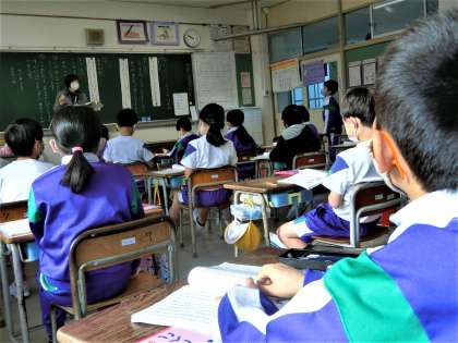 話合う2年生。発言の仕方も聴き方も上手になりました。