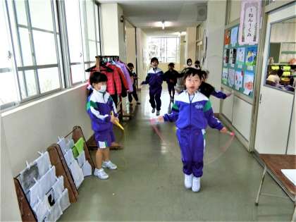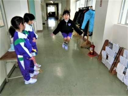 始業前や休憩時間には、なわとび運動に親しむ1年生の姿が日々見られます。
