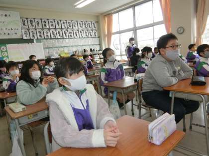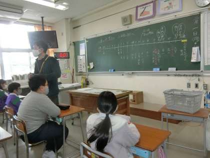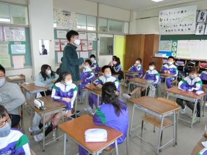 キャリア学習。将来、就きたい仕事について紹介し合う4年生。