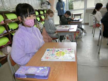 遊ぶの大好きな1年生。今日は、これから、お手玉など昔の遊びを楽しみます。