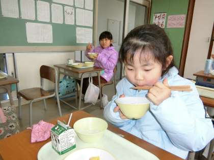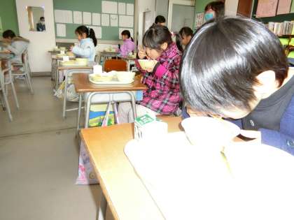 今日のメインは、かやくうどん。1年生は、うれしそうです。