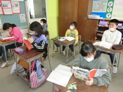 説明文「うなぎのなぞを追って」を読み進める4年生。
