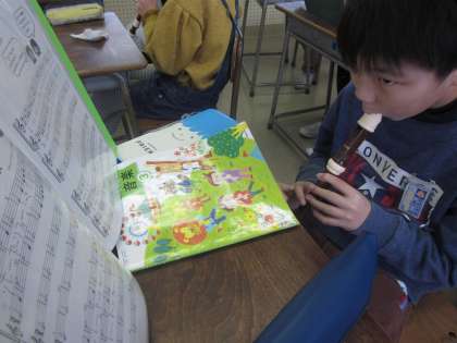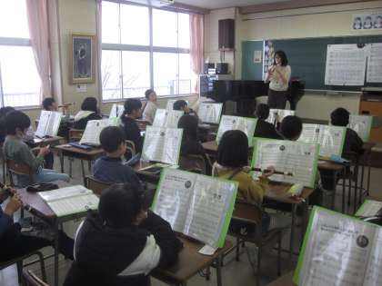 3年生音楽科の学習の様子。リコーダーの練習をがんばっています。