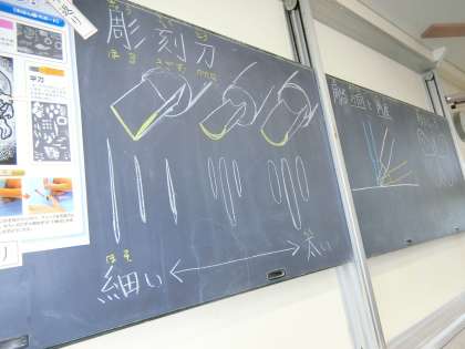 まず、彫刻刀の名前や特徴について学習しました。