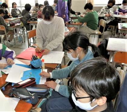 卒業を祝う週間の準備を分担して進める5年生。