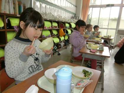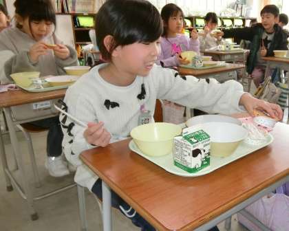 1年生のランチタイム。今日は、主菜やデザートを選べるセレクトメニューの日です。