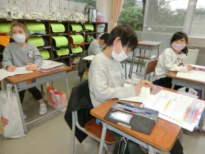 2月15日(月)1年生 ノートに書く