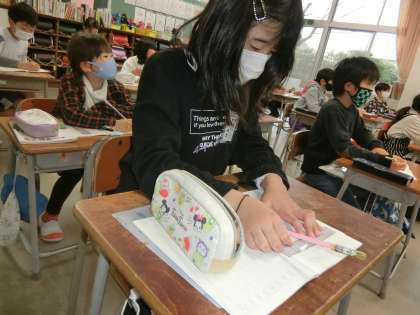 長さの測り方や表し方の学習をする2年生。