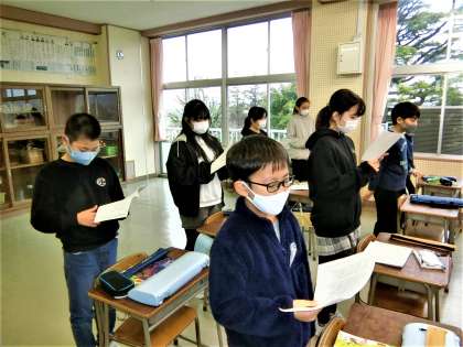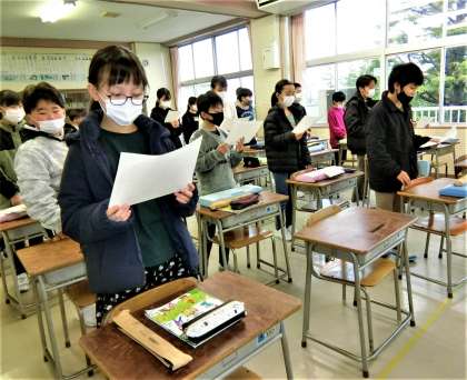 器楽合奏をした後、卒業式で6年生に贈る歌の練習に入りました。