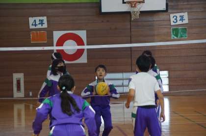 体育の時間に、キャッチバレーボールのゲームをしました。