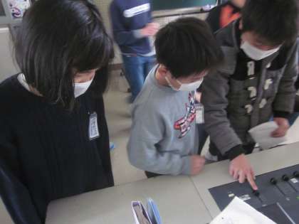 4年生の委員会体験の様子。放送室で委員会活動の様子を見学しました。