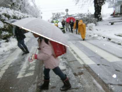 また、雪道の登校となりました。各教室で、雪道の歩き方について安全指導をしました。