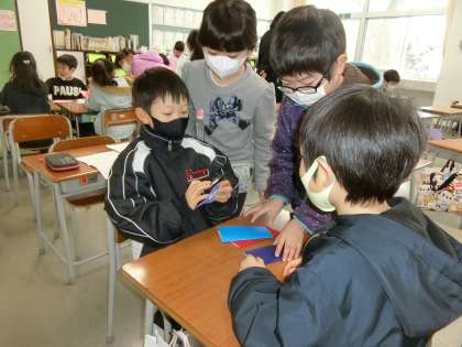 折り方を本で調べたり友達から学んだりしながら、自分の世界を広げていく1年生。