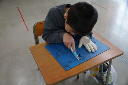 3年生になって扱う彫刻刀。安全に気を配り集中して取り組んでいます。