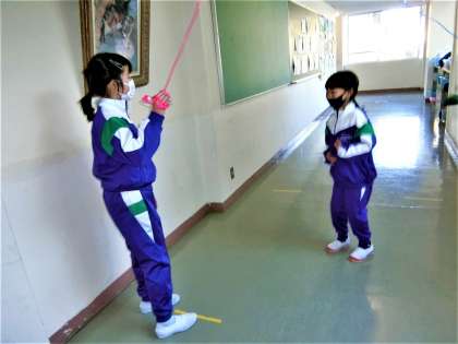 2月22日(月)2年生 なわとび運動を楽しんでいます